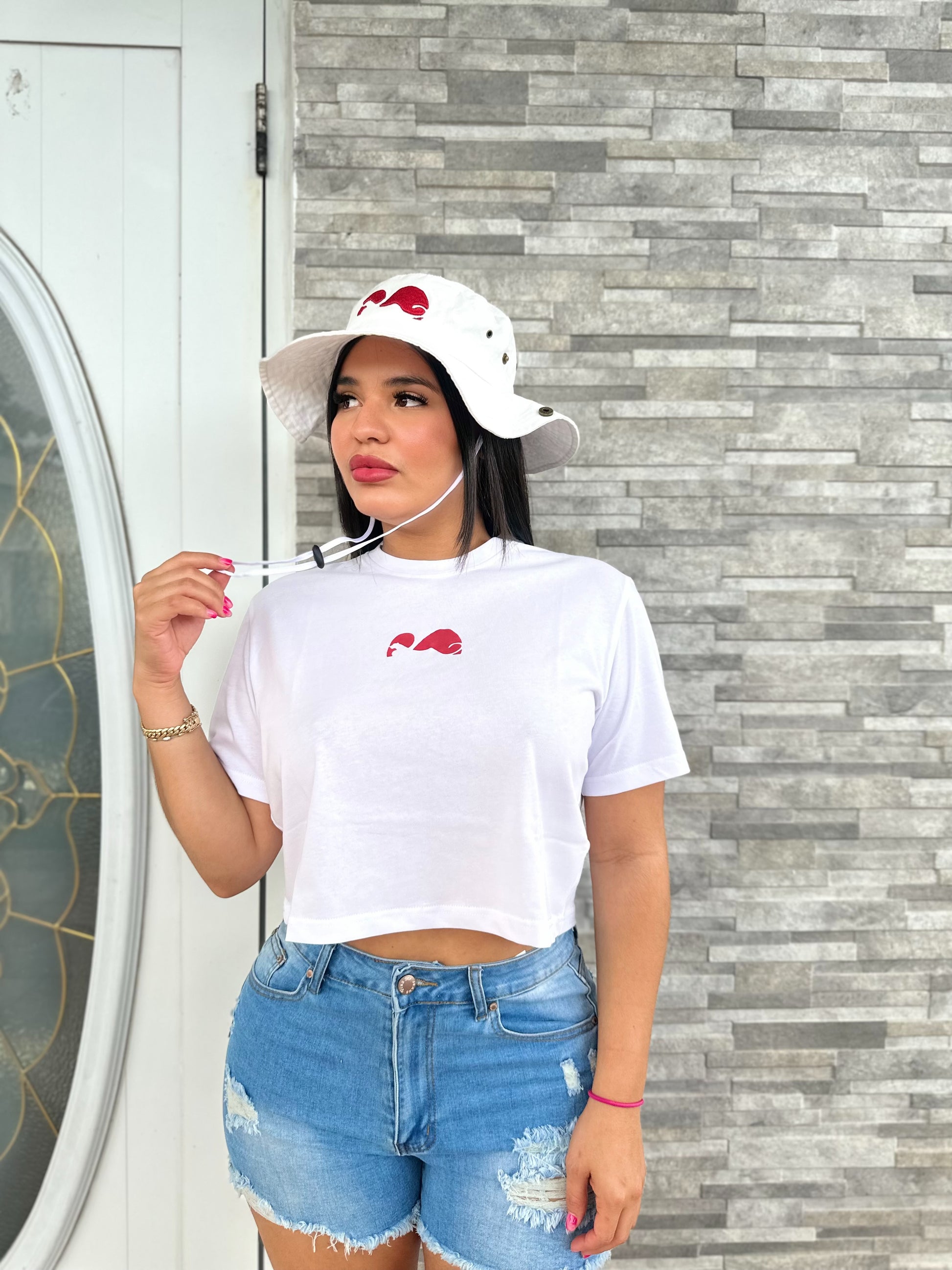 Girlys White|Red Logo Crop Top
