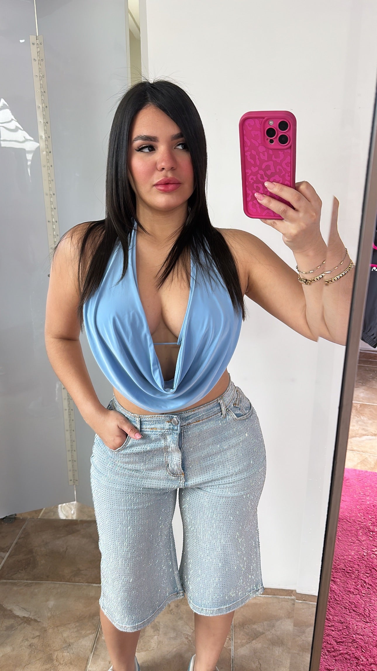 Rhinestone Light Denim Jorts